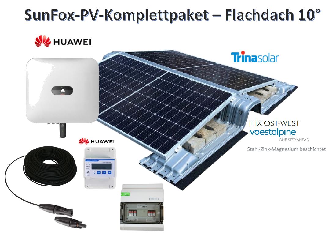 HUAWEI - PV PAKET mit iFIX-Voest Alpine Flachdach-Montagesystem