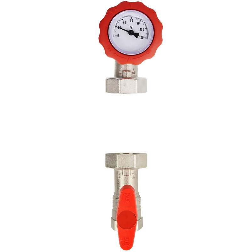 1 x Kugelhahn mit Thermometer im Griff 1 1/4" IG x 2" Überwurfmutter