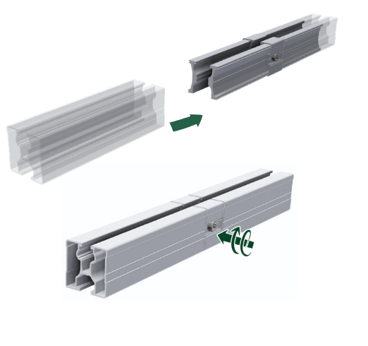 Robuste Längsverbindung von Modultragprofilen ohne störenden Außenaufbau.