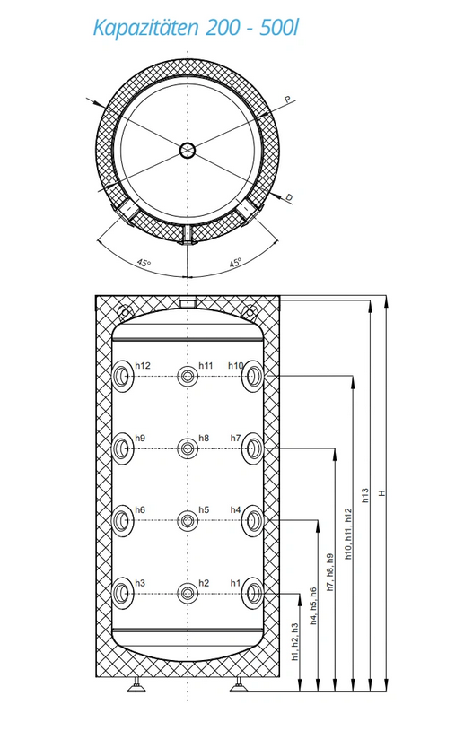 Sunex Pufferspeicher 500L mit 50 mm solierung.